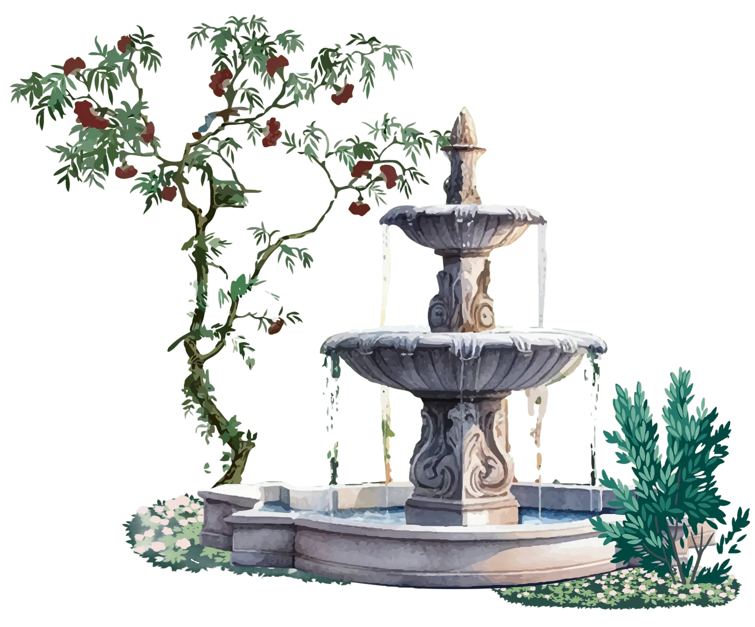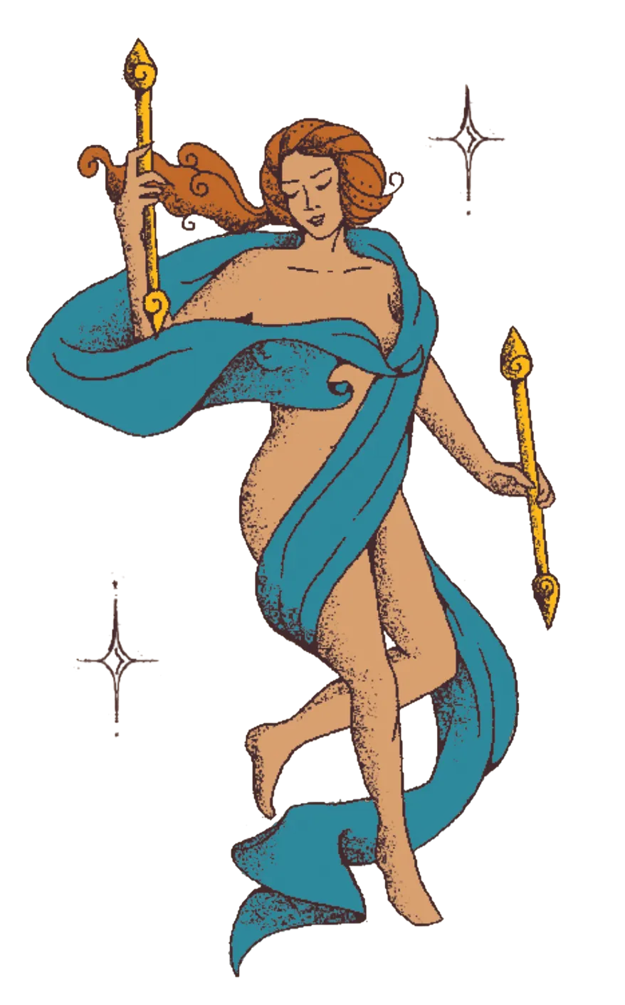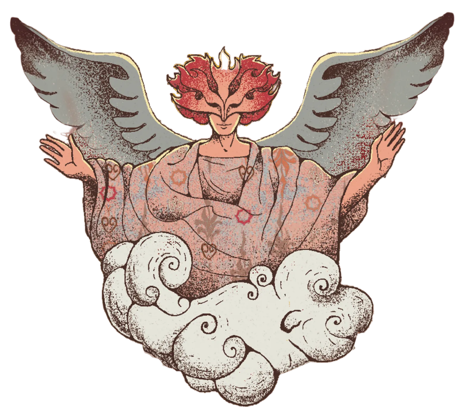 Visual System: Dream world lady archetype, soft textile coloration, misty gradients